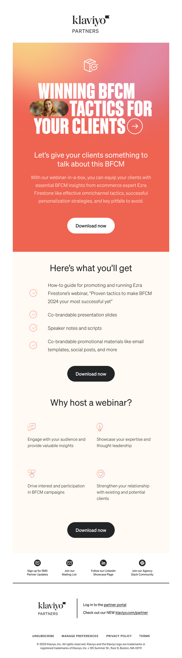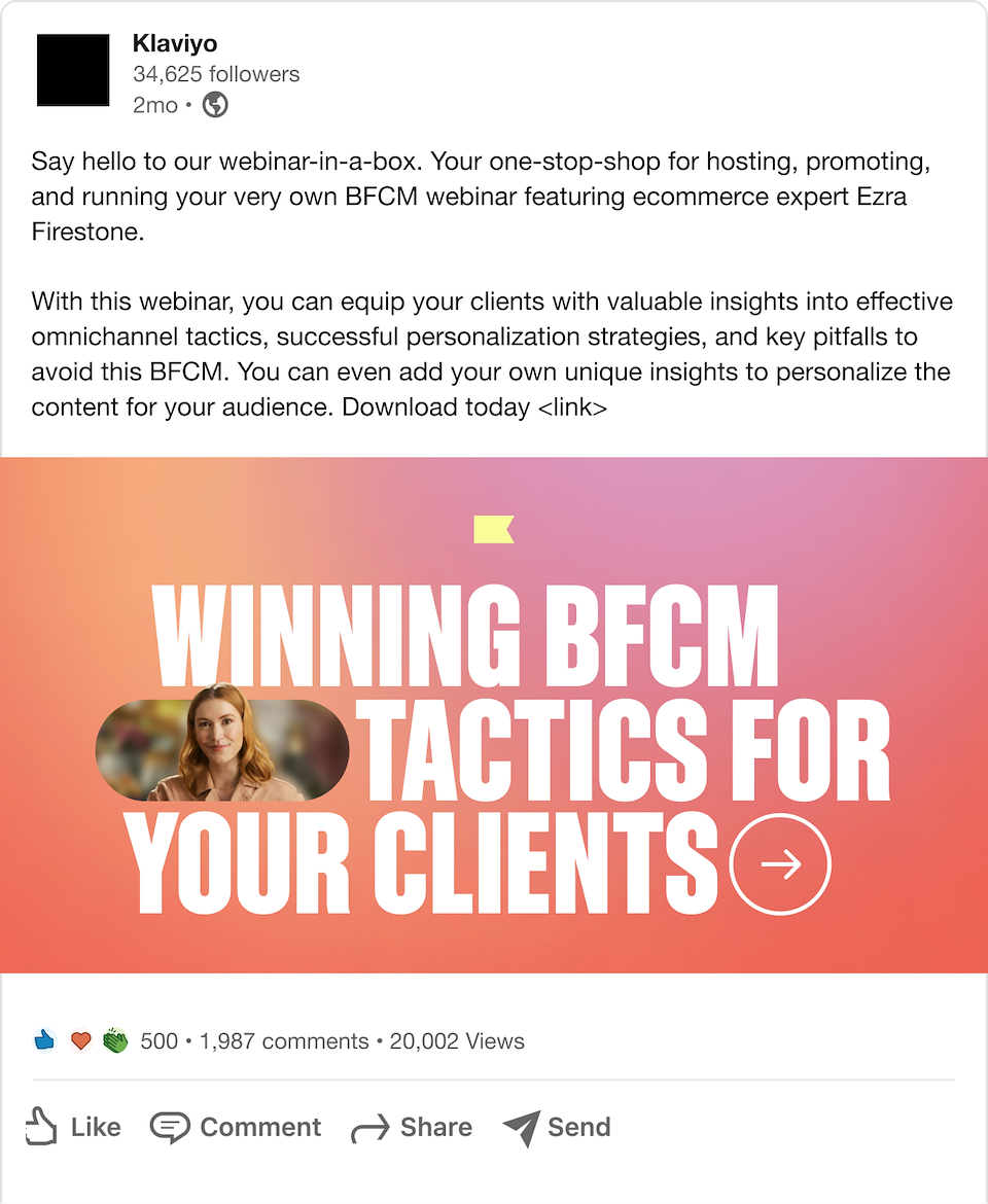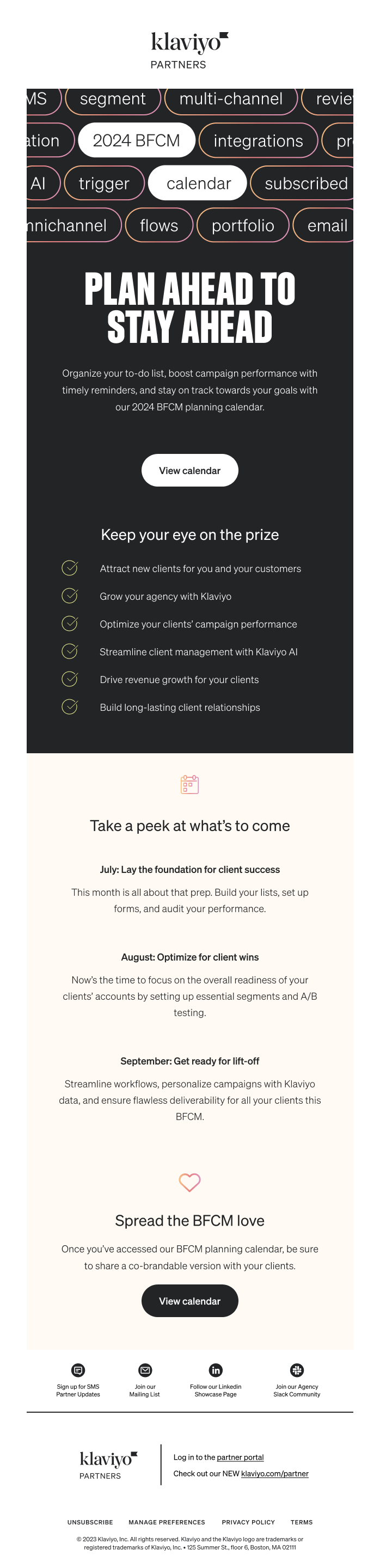 A branded landing page experience provided ongoing tips and tricks for brands and retailers to help them start BFCM planning and strategies earlier, so they’d be ready and armed with paying customers once Black Friday/Cyber Monday hit.